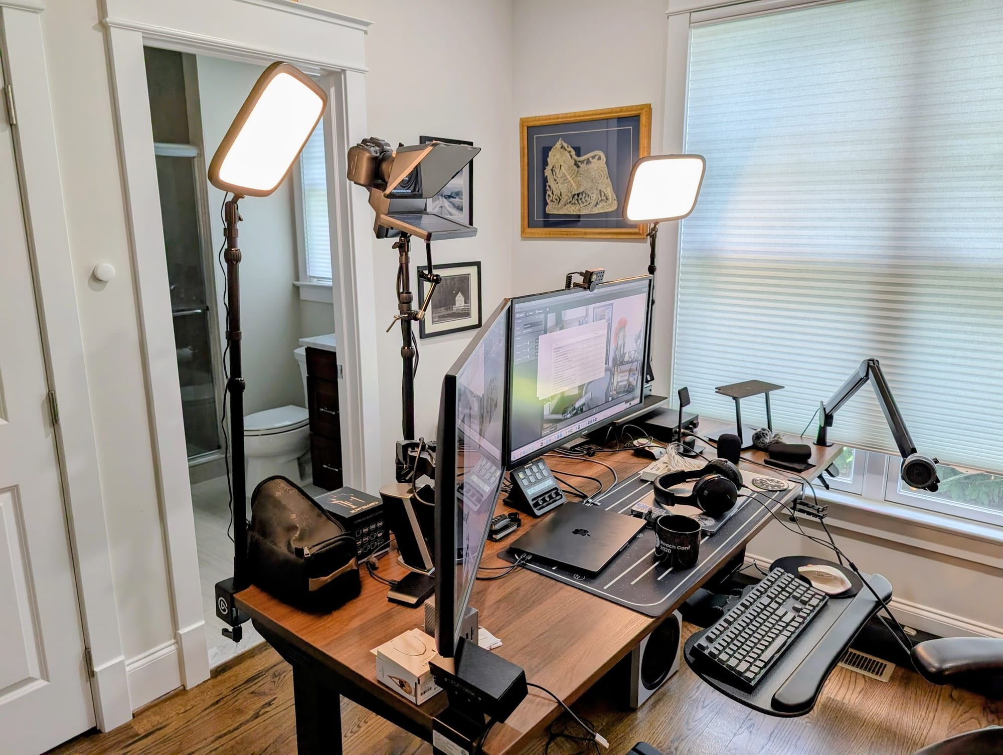 At this point, I had a problem: How the hell was I going to manage all this equipment? I had lights to turn on, camera settings to adjust, teleprompter to control, audio levels to monitor, and probably a dozen other things I was forgetting.